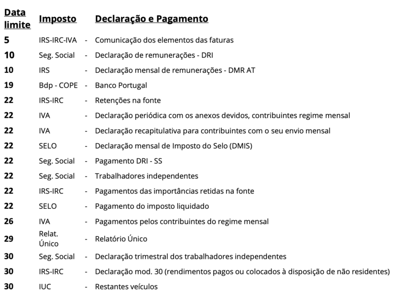 Calendário Fiscal de Abril de 2024