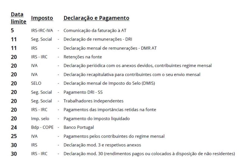 Calendário Fiscal de Junho de 2025
