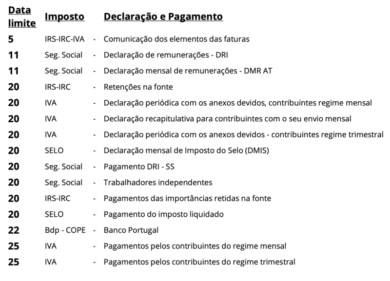 Calendário Fiscal de Novembro de 2024