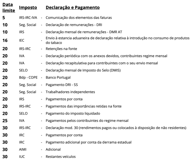 Calendário Fiscal de Setembro de 2024