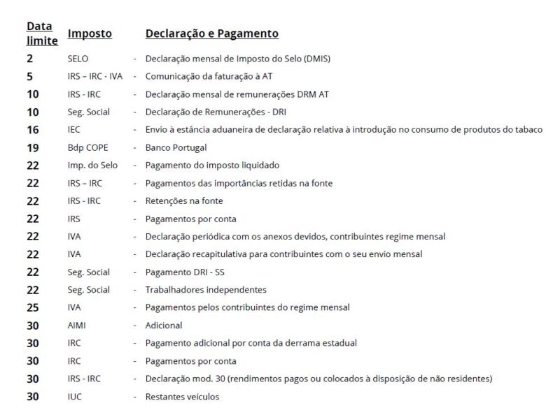 Calendário Fiscal de Setembro de 2025