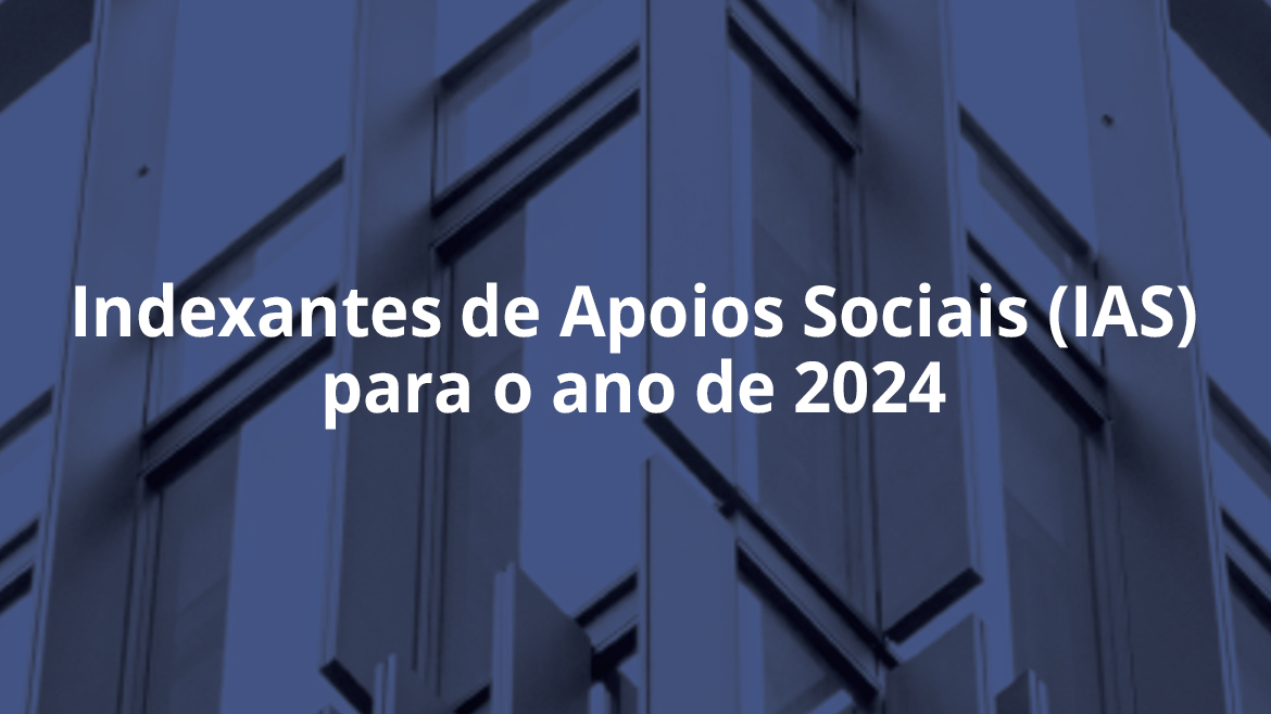 NotíciasIndexantes de Apoios Sociais (IAS) para o ano de 202415.Jan.2024 7 Com a publicação da Portaria nº 421/2023 de 11 de dezembro, atualizou o valor da IAS para o ano de 2024, no valor de €509,26. A presente produz efeitos a partir de 1 de janeiro de 2024.A IAS no ano de 2023 foi de 480,43€. O qual teve um aumento de 28,83€.Portaria nº 421/2023 de 11 de dezembro. Nós podemos ajudar!Contacte-nos
